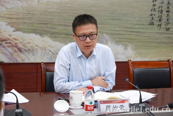 周妙荣高度肯定学校办学特色和办学成果,简要介绍了钱塘区和钱塘科学城在产业发展、校企合作等方面情况。他指出,学校有独具“经贸”特色的“校社政企”四方合作体制机制,在赋能钱塘区经济社会高质量发展等方面取得了一系列标志性成果。他希望学校能继续发挥资源优势,进一步加强区校合作,共同探索产教融合、科教融汇新路径,携手打造区校合作“经贸”样板和典范,共谋区校共赢发展新篇章。